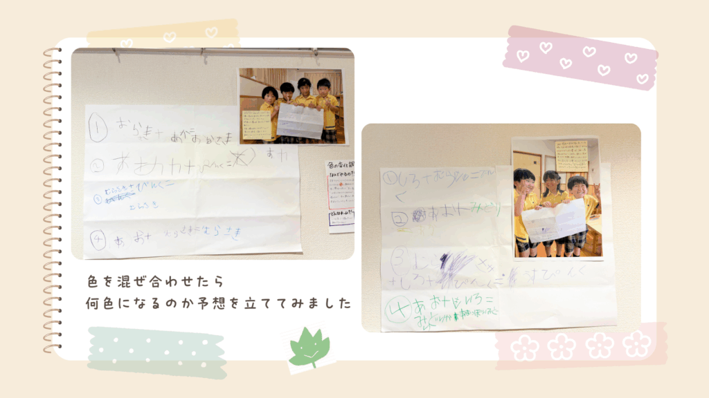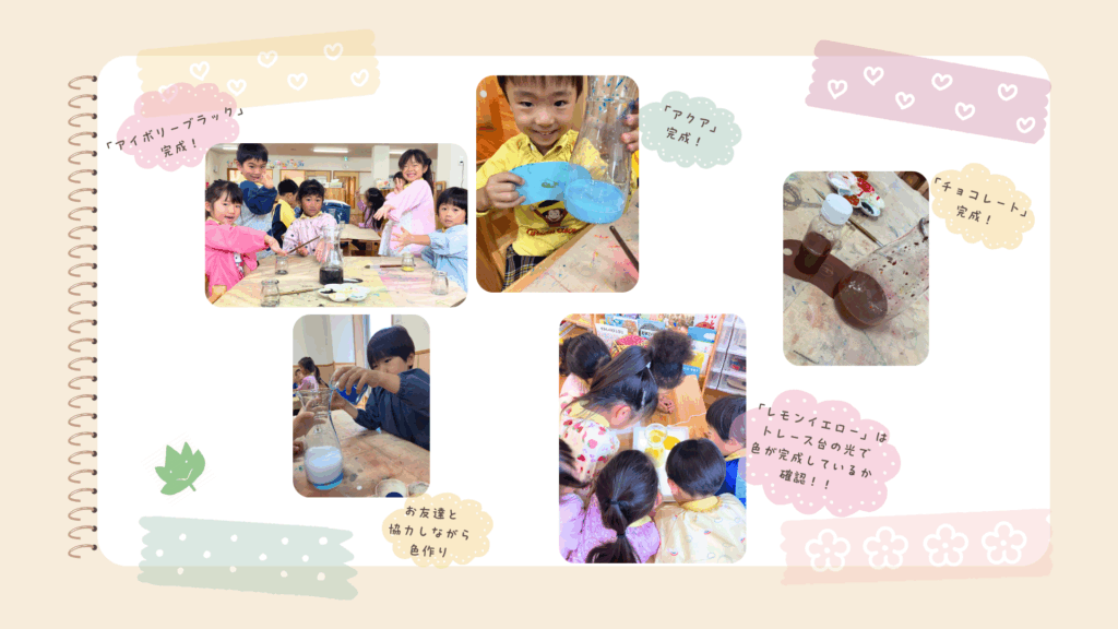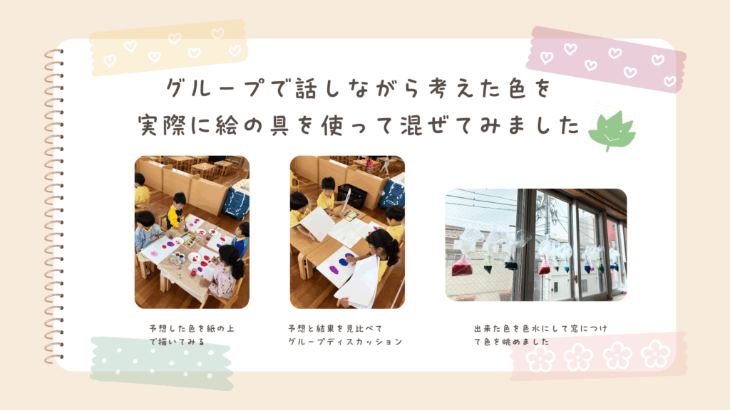 「光」や「音」など、子どもたちが夢中になれる様々なテーマを探究します。遊びを通して、考える力、工夫する力、創造する力を養います。