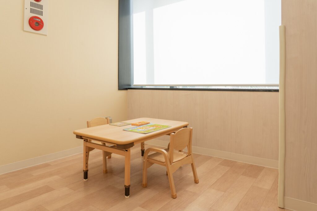 保護者の皆さまが安心して職員にご相談いただけるお部屋「そよかぜ」。やさしい風に心がほぐれるよ
